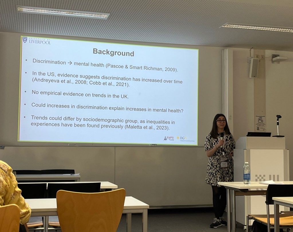 The conference presentations began on Tuesday morning. I listened to a variety of talks and posters throughout the day, including some interesting mental health research. I went back to the hotel that evening and began to prepare for my own presentation, which was scheduled first thing the following morning. After practicing this and ensuring I was keeping to the 10-minute time limit, I felt confident for the following day. When I attended my session on Wednesday, it was nice to see my colleagues in the room. I had presented my work to them previously at lab meetings, so it was reassuring to know I had already given presentations to some individuals within the room. The main aim of my talk was to highlight our concerning findings of increasing mental health and discrimination in the UK between 2015 to 2020. I was able to keep to time, and confidently respond to questions after the presentation had finished. After completing this, I instantly felt more relaxed and I knew I could now focus on listening to other academics’ research for the rest of the conference.