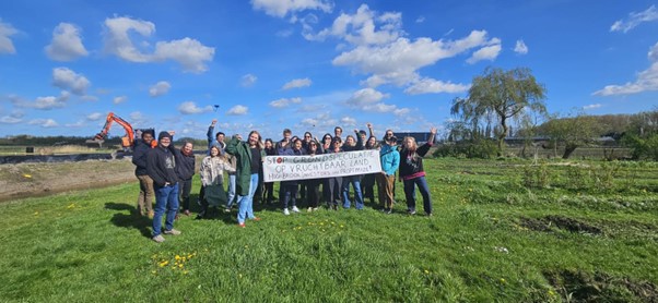 Our morning involved a visit to Voedselpark Amsterdam in Amsterdam Nieuw-West, significant for being the city’s last agricultural land. Located on the Lutkemeerpolder, rich with fertile organic sea clay, the local community have a vision for Voedselpark to be one of the largest urban agricultural parks in Europe. However, a group of local activists are currently engaged in a battle with the municipality of Amsterdam to prevent the Schipol Area Development Company from building distribution centres on the land. We had the privilege of learning from the activists at Boterbloem about how they are resisting the plans, and even got to give back to the park in small way by getting involved in weeding, mowing, and cleaning out the goats!