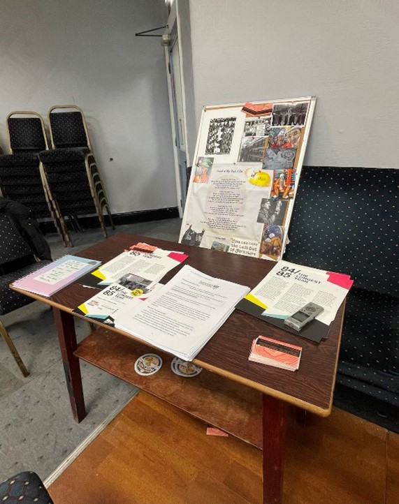 The culture of a community is significant, and some of the cultural rules in coal mining communities, are crucial to appreciate. For example, when entering someone’s house: Take your shoes off, (or offer to), bring a gift, be prepared to be asked directly about your links to the village. I made sure that I came bearing a participation pack, (Figures 1 & 2) which was given to all participants as well as at the launch event. This included printed off information on the project (a copy of the consent form and participant information sheet) along with leaflets about the strike, poetry and information on the NCMM (National Coal Mining Museum). The biscuits I brought to home visits were from the museum (although I was also keenly aware that for older generations the aspect of ‘the funeral biscuit’ might be an issue so I brought cake!) to promote the mining museum and to highlight its ongoing community sessions. This prompted community leaders to offer free items, the curator of the museum gave me a selection of old stock for free, which included pens and stickers and the town council gave me free booklets on the history of the village. These gifts were accepted by participants with ‘oh you shouldn’t have but they do look lovely!’ quickly followed by ‘so are you from round here then?’. My reflective journal notes how the politics of being local and the power dynamics of gift giving will be explored further as I start to write my chapters.